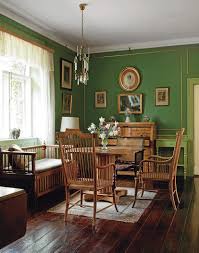 lumière du jardin sur le parquet poli. Dans une des pièces il y a des peintures